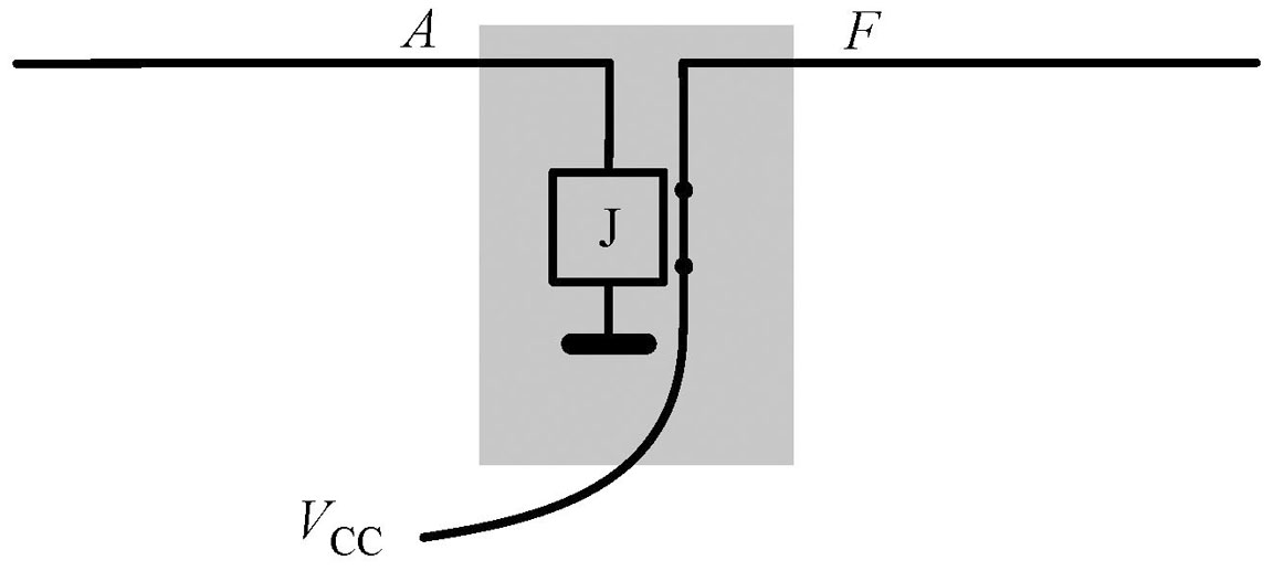 我们只能将半加器用于最右面一列的相加:1 加 1 等于 0,进位 1。对于右面算起的第二列,由于进位位的存在,实际上需要将三个二进制数相加,而随后的每一列的加法都是这样的。随后的每一列二进制数相加都需要将进位位算进来。为了对三个二进制数进行加法运算你,我们需要将两个半加器和一个或门做如下连接。