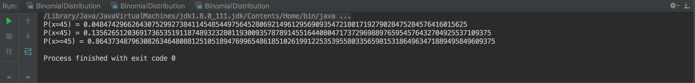 - 将 n=3,p=0.5,k=2,带入得到每个结果的发生的概率为 $$p=0.5^2(1-0.5)^{3-2}=0.125$$